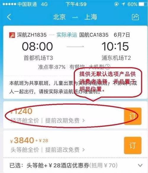 事实上,民航局运输司8月9日也发布了《关于规范互联网机票销售行为的通知》。通知中明文规定:“在销售机票时不得以默认选项的方式‘搭售’机票以外的服务产品;应当通过清晰显著、明白无误的形式将贵宾休息室、保险等除机票以外的附加服务设置为旅客自主选择项,以有效避免旅客误选的情形发生。”