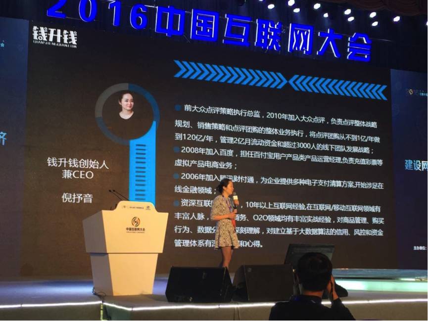 6月22日,知名金融科技平台钱升钱作为本次盛会的合作方,亮相互联网大会,CEO倪抒音代表钱升钱进行了精彩演讲,并被大会授予“2016中国互联网产品及服务创新奖”荣誉称号。