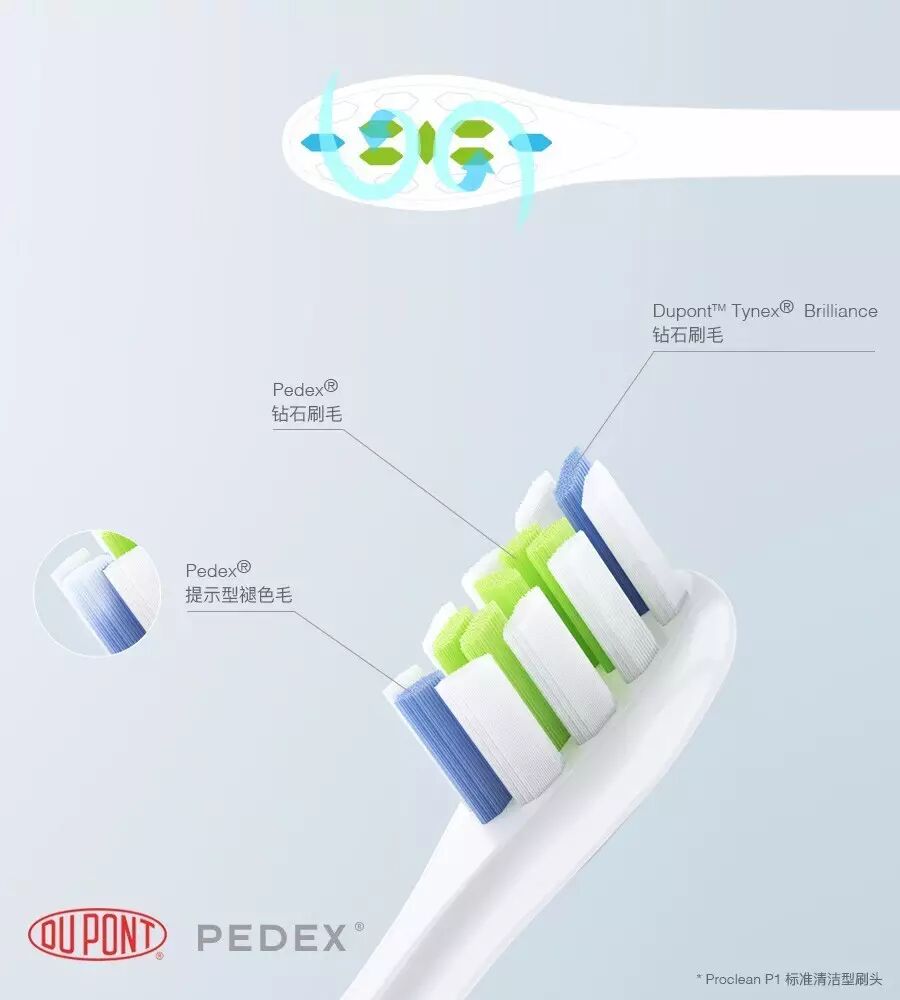 Oclean联合30年行业经验德国刷头工程师,创新性地加入菱形钻石结构设计,刷毛部分采用Dupont Tynex® Brilliance 和Pedex钻石刷毛,每一根均是钻石菱形截面,深入清洁的同时保证口感舒适。
