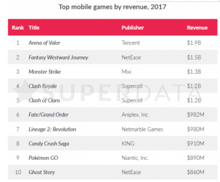 根据美国市场研究公司SuperData公布的“2017年全球移动游戏市场报告”显示,市场排名第一的《王者荣耀》全年收入高达19亿美元,第十名的《Ghost Story》也达到了8.6亿美元。相比之下,《Super Mario Run》全生命周期的7100万美元收入,似乎真的有点儿不够看。