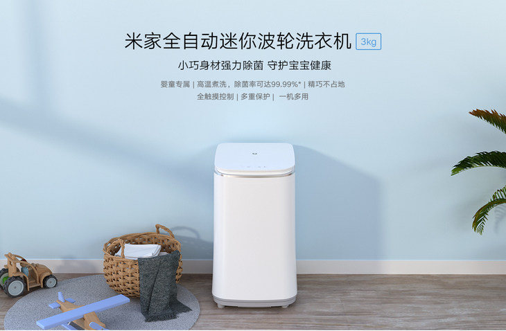 米家全自动迷你波轮洗衣机 3kg 799元: 高温煮洗 婴童专属