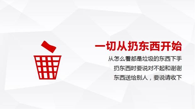 我们为什么要扔东西?过去的观点认为是因为客观环境限制与我们的财富膨胀之间的矛盾决定的。例如我们的房间真的没大到能装满你所有的东西,因此要鼓励大家只留下日常必备和心爱之物。在过去的习惯中,每一样东西都是有价值的,每一样东西都能带来比过去更好的生活,尤其当我们从物资匮乏的年代走来,我们伴随着物质丰富的时代成长,因此我们觉得每一样东西都有其发挥光彩的一天,然而这份珍惜却最终成为了负担。