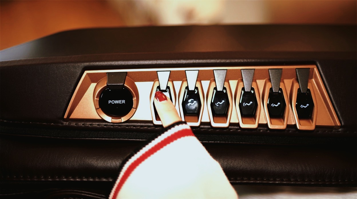 从复位到运行,升降起伏以及呼吸灯效都很有科幻色彩,分离式外壳设计与手工定制的内衬也为荣泰产品设计的立体与精致加了分。