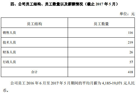 补充公告中的数据显示,截至今年5月,该公司员工包括管理层、财务部、行政部以及其他员工的累计员工总数为191人。
