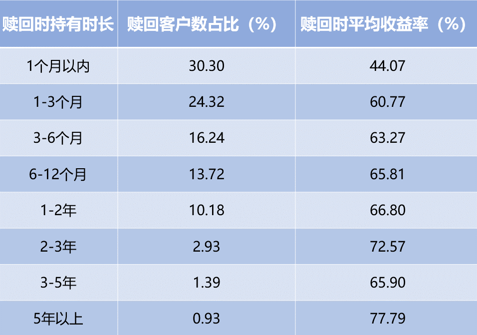 另一方面,CBNData曾调研发现,年轻人偏爱活期与短线产品。与之相矛盾的是,蚂蚁财富在2020年发布的数据显示,基金投资者的实际盈亏与平均持有时间呈正相关,持有5年以上的盈利概率近80%。