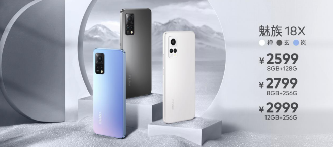 手机部分,魅族 18X 玄(黑)、禅(一体纯白)、岚(蓝粉)配色 8+128G、8+256G、12+256G 版本售价分别为 2599 元、2799 元、2999 元 。